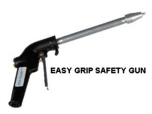 There are two types of Safety Air Blow Off Guns to choose from depending on an individual’s personal taste and comfort. The Easy Grip Safety Gun or the Hand Comfort Button Gun.